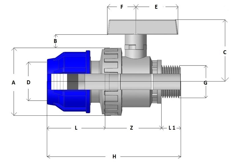 Single union ball valve with male threaded ends / quick coupling for P.E