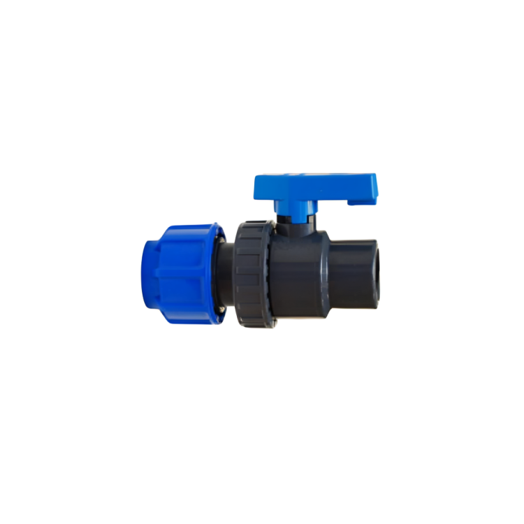 Single union ball valve with quick coupling for P.E